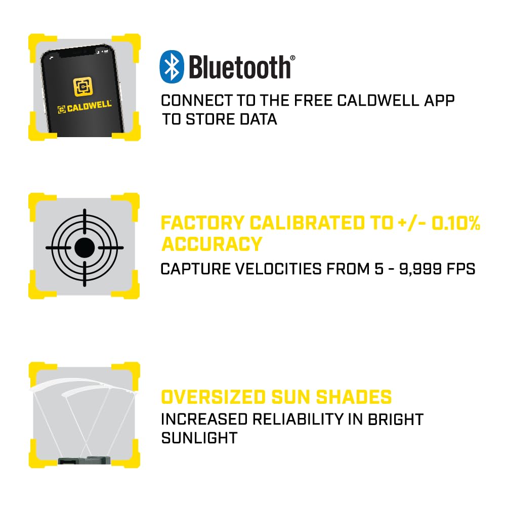 - COMPATIBLE: Available on the Google Play and Apple App Stores, the Caldwell app records various performance metrics including muzzle, average, and min/max velocity, kinetic energy power factor, shot string, and more.