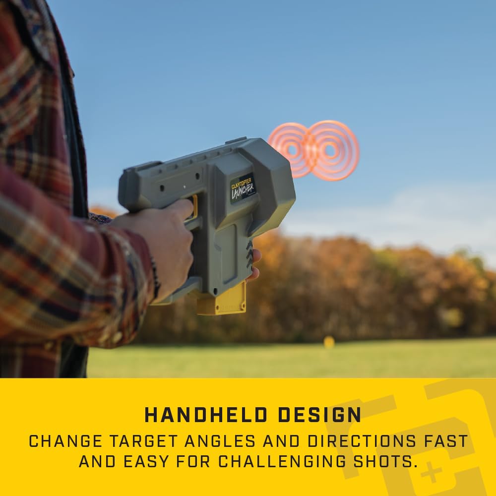 - Handheld Launching: Weighing less than 3 pounds, this launcher is compact and lightweight, fitting in most range bags; with a simple point-and-shoot design with no extra wires or cords required, this launcher is ready for target practice anywhere you desire