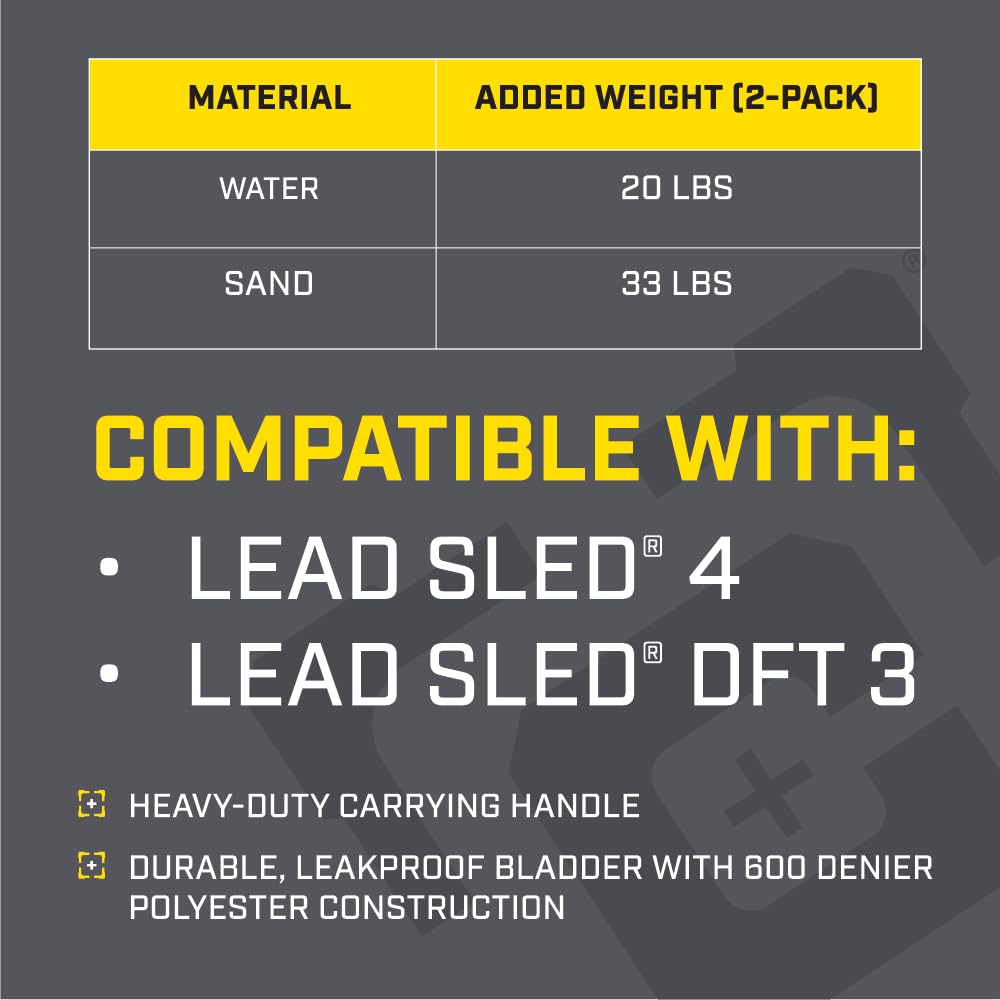 - Weight: Adds 20 pounds of water or 33 pounds of sand to the Lead Sled weight tray